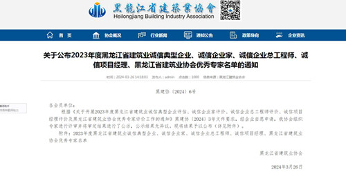 經(jīng)省有關(guān)部門綜合評估,日前我公司榮獲“2023年度黑龍江省建筑業(yè)誠信典型企業(yè)”殊榮。同時(shí)我公司楊凱、申維峰、王占福三位同志分別榮獲“2023年度黑龍江省建筑業(yè)誠信項(xiàng)目經(jīng)理”榮譽(yù)稱號。